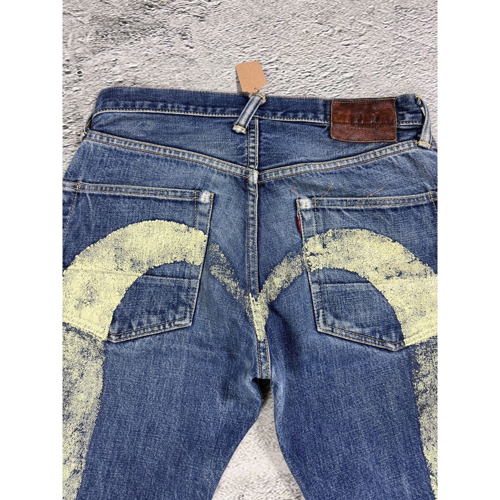 Evisu jeans yellow daicock big logo blue selvedge denim