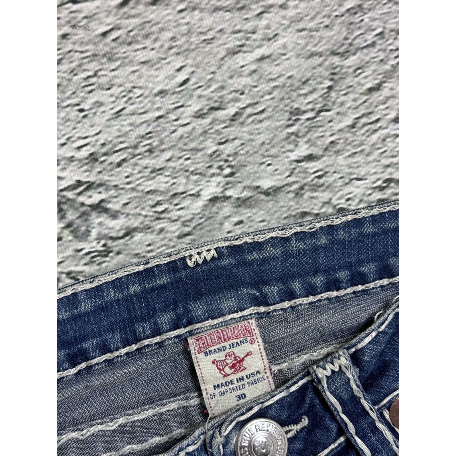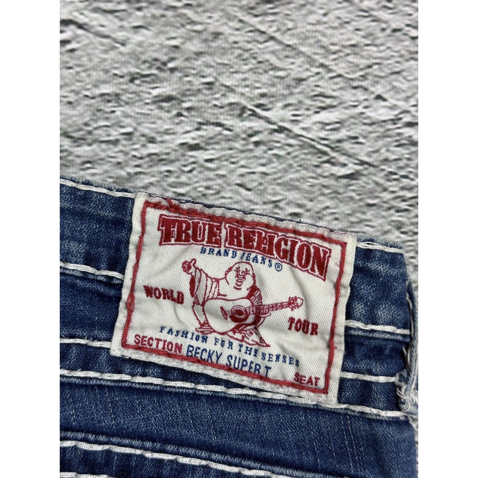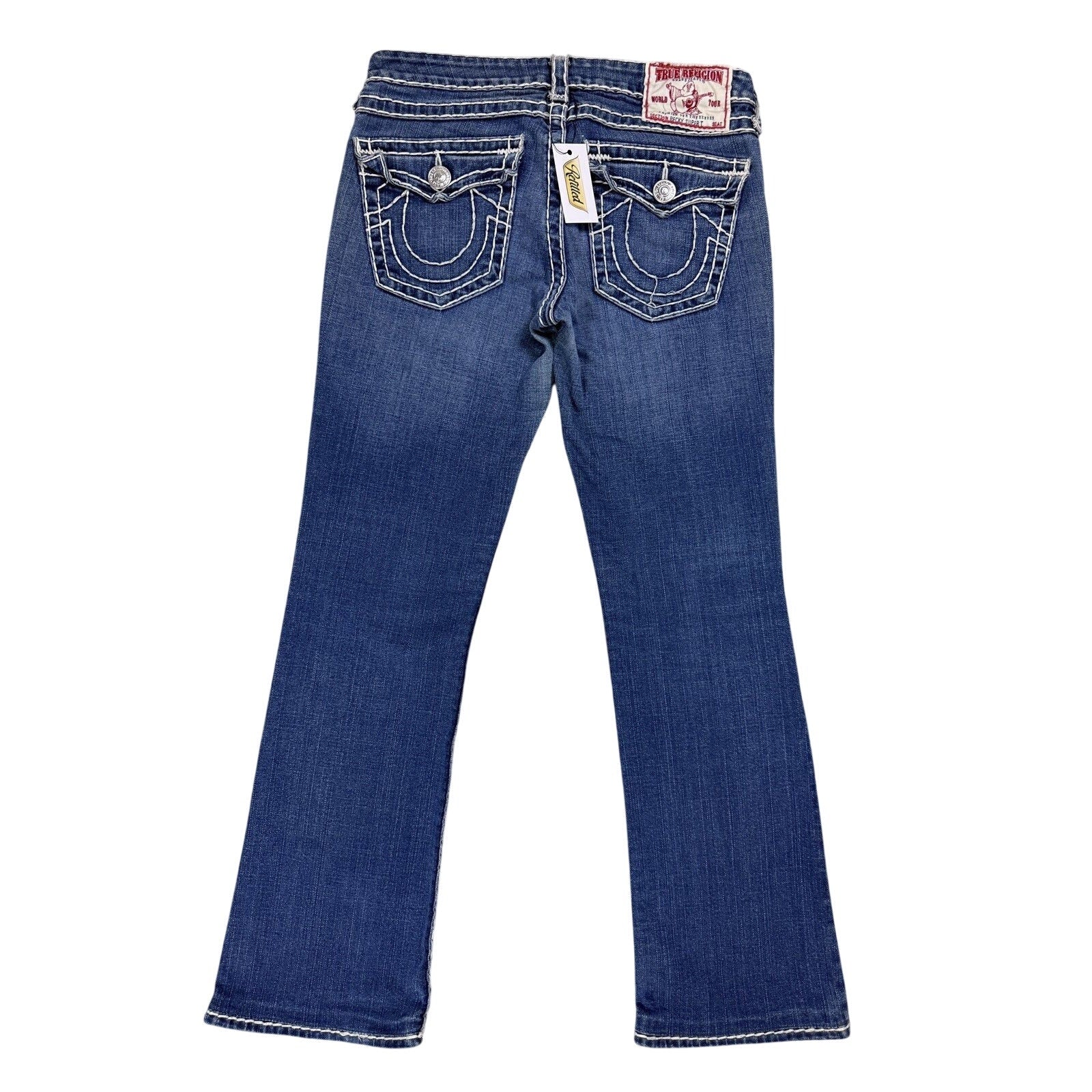 True Religion blue jeans white thick stitching Billy