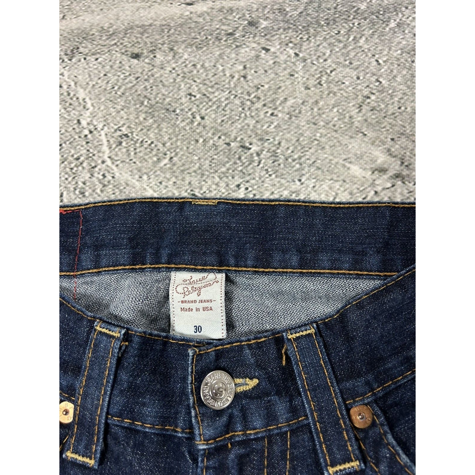 True Religion jeans bootcut navy blue painted horseshoe Y2K