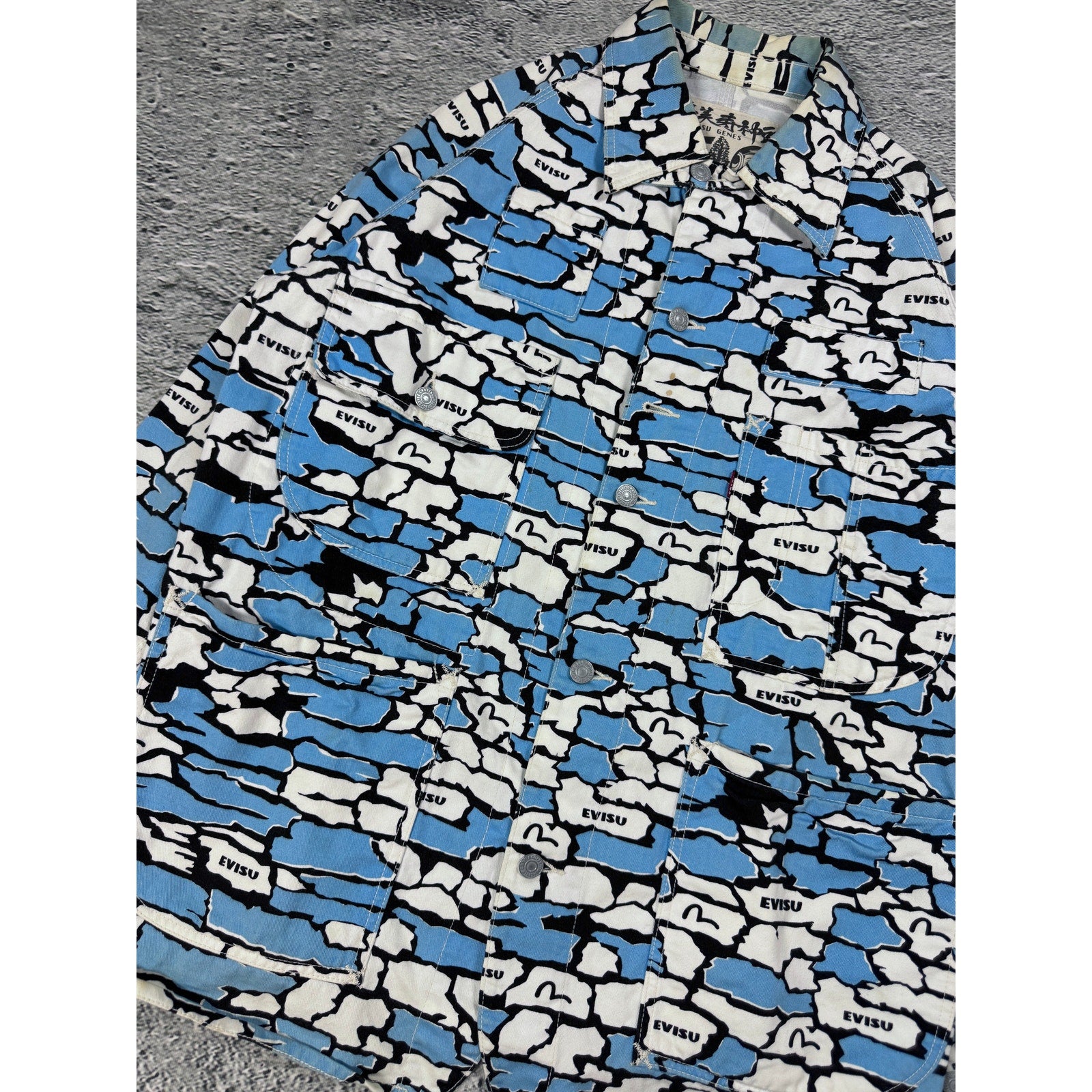 Evisu Japan vintage denim jacket blue white sky camo
