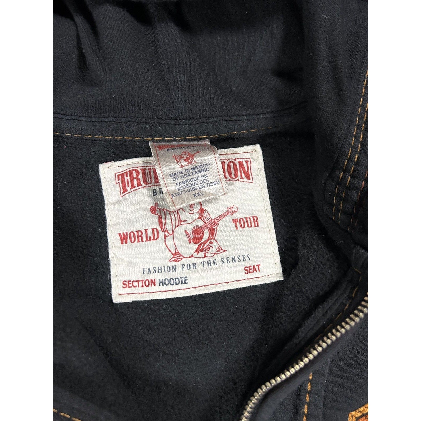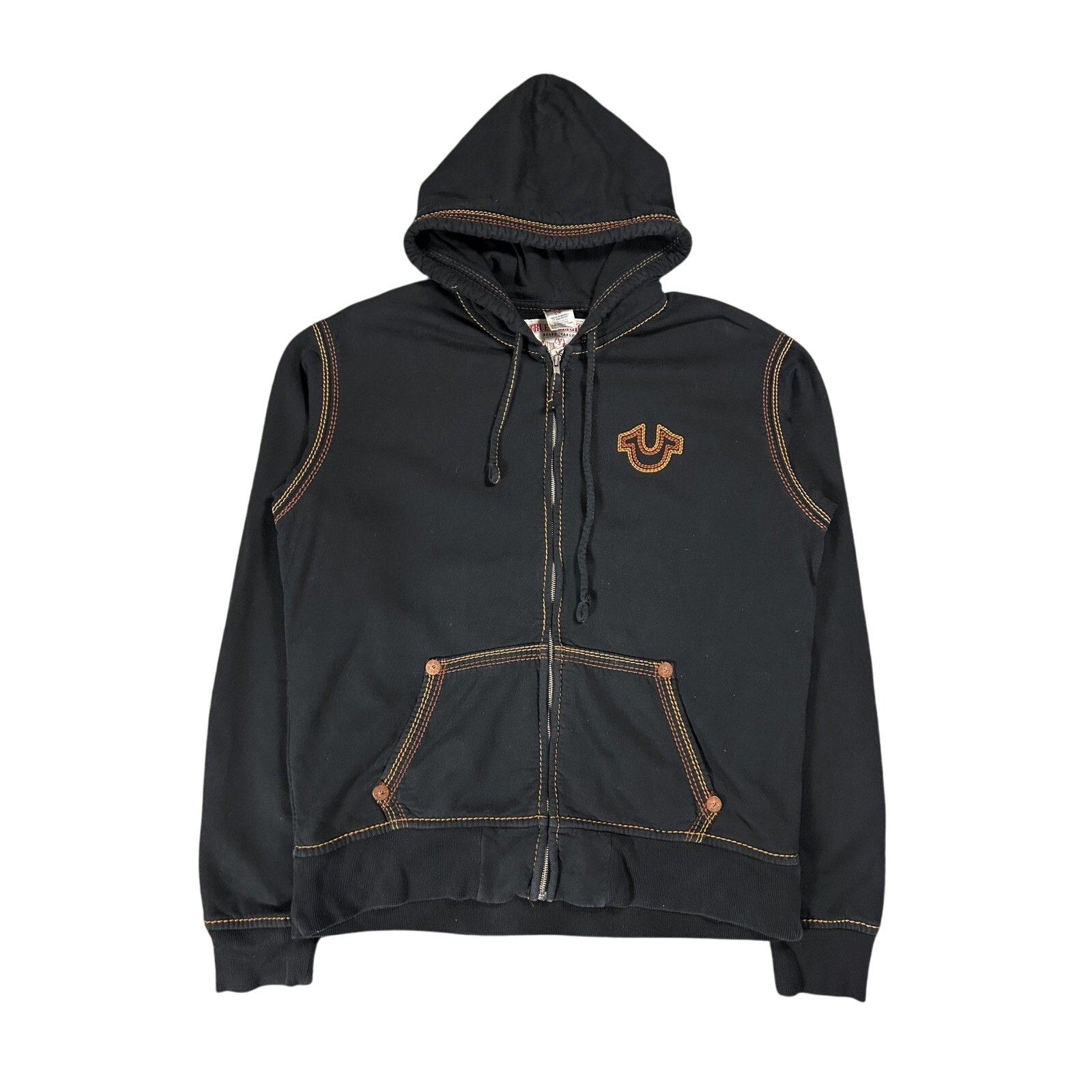 True Religion vintage black zip hoodie white big logo