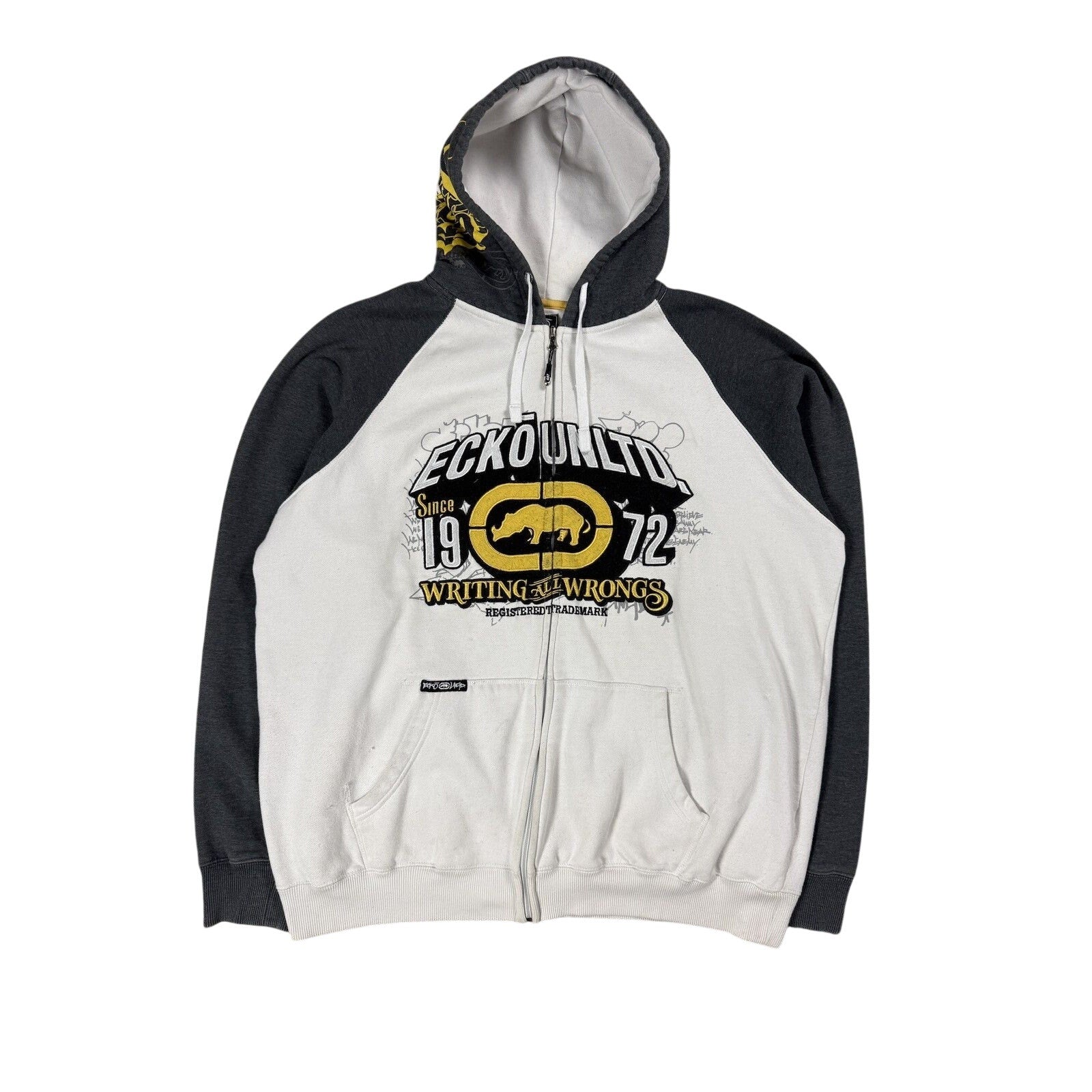 Ecko Unltd vintage zip hoodie white grey yellow big logo Y2K