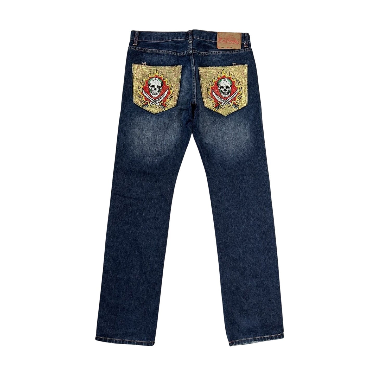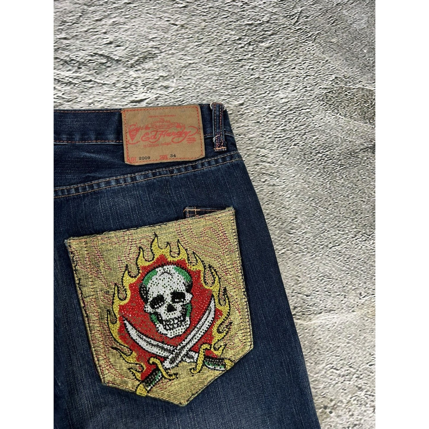 Ed Hardy Christian Audigier vintage jeans big logo pants