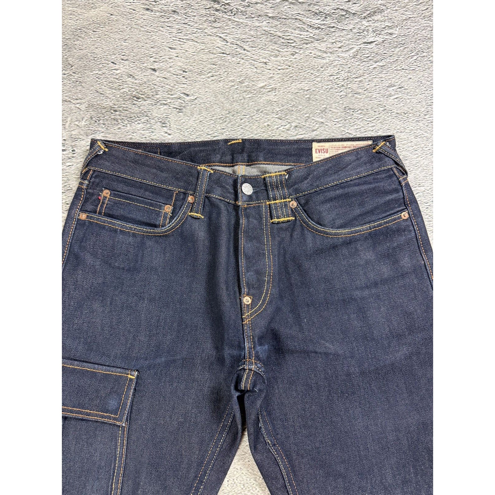 Evisu jeans daicock cargo big logo red selvedge denim
