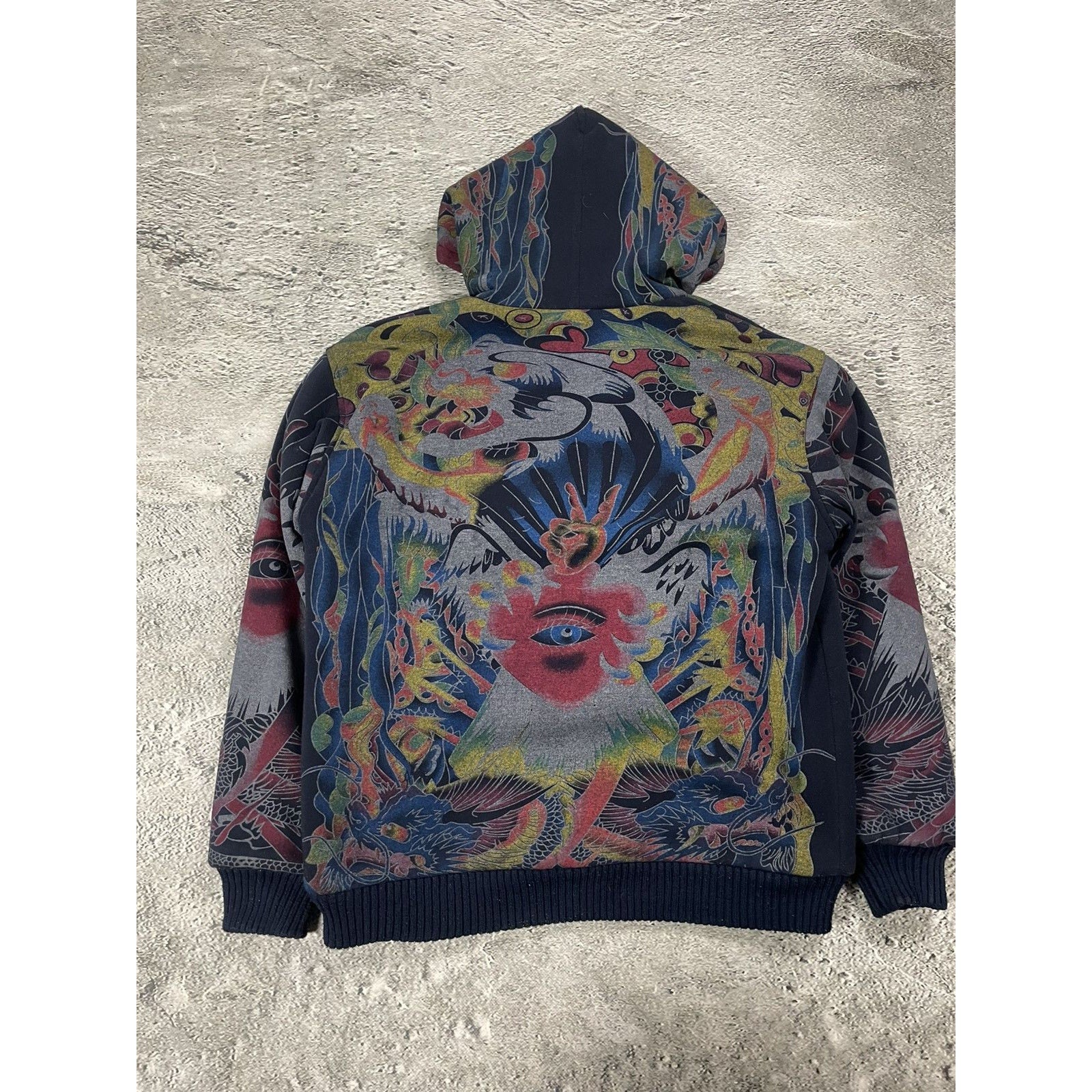 Really Point Y2K vintage zip hoodie navy fur Ed Hardy