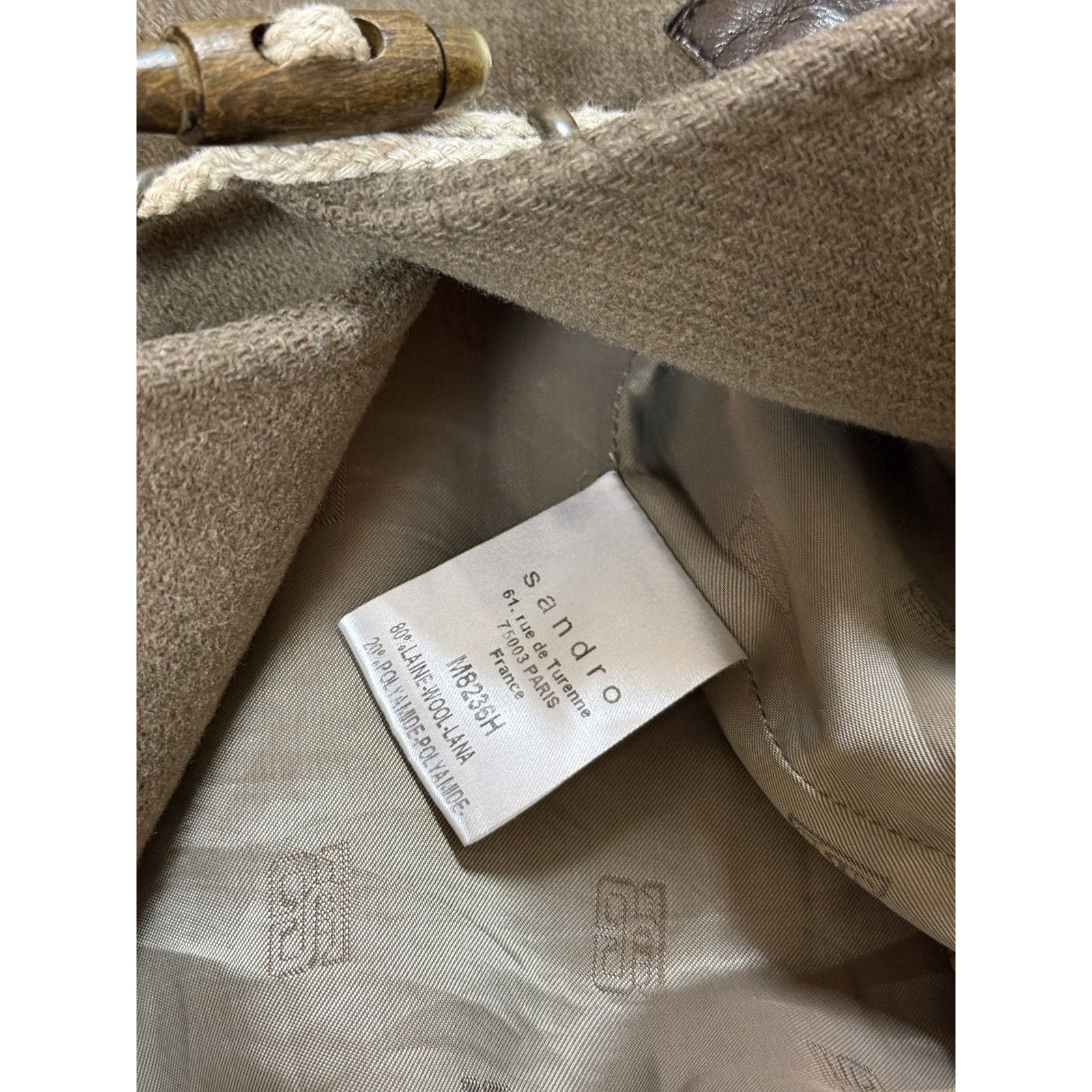 Sandro coat heavy wool khaki green hooded with fur
