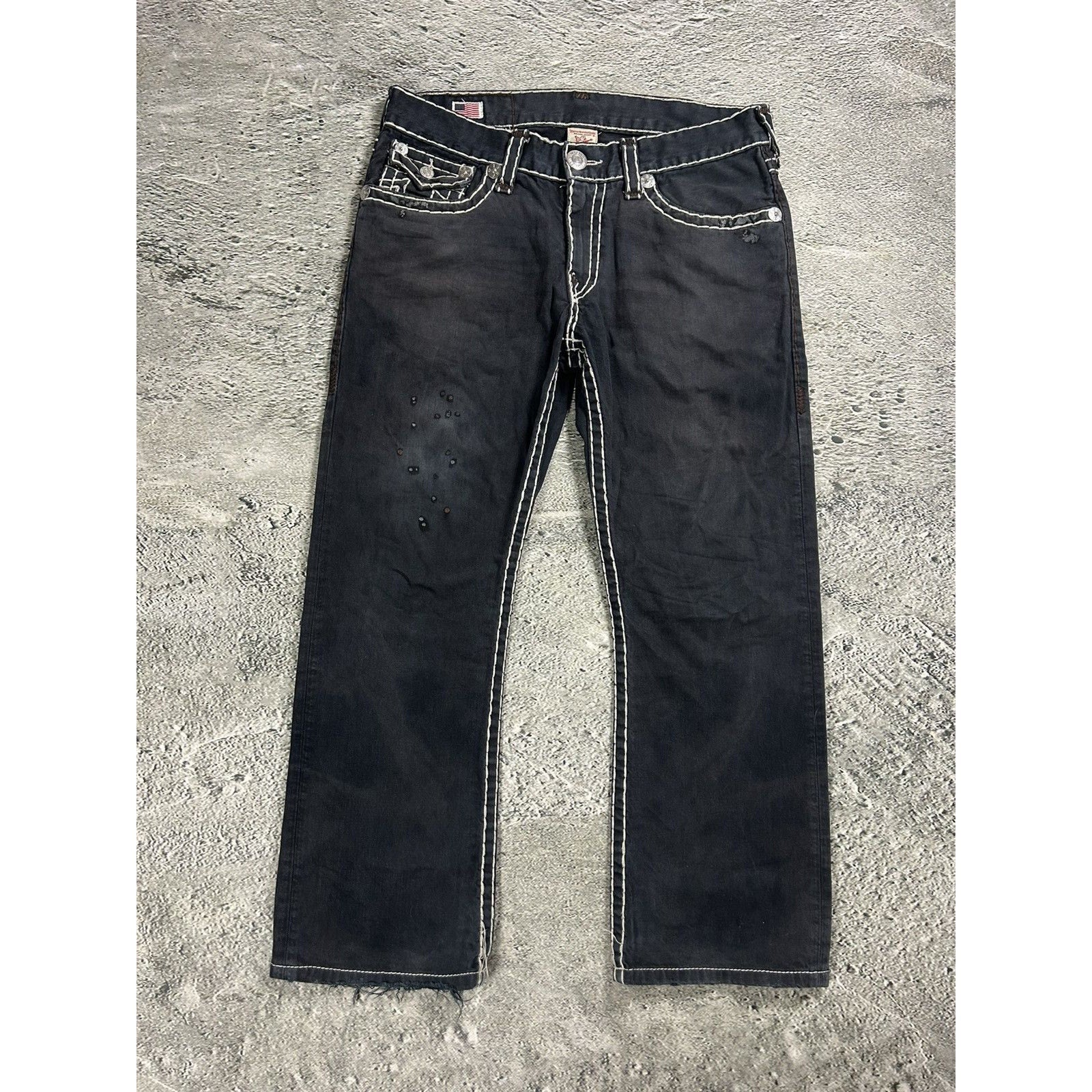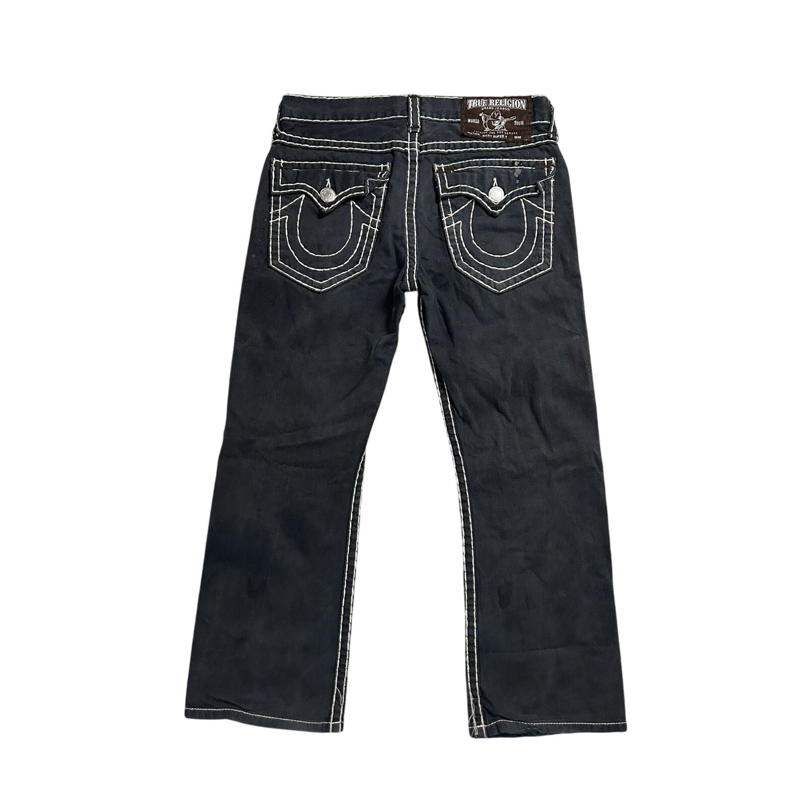 True Religion black jeans white thick stitching Y2K Ricky