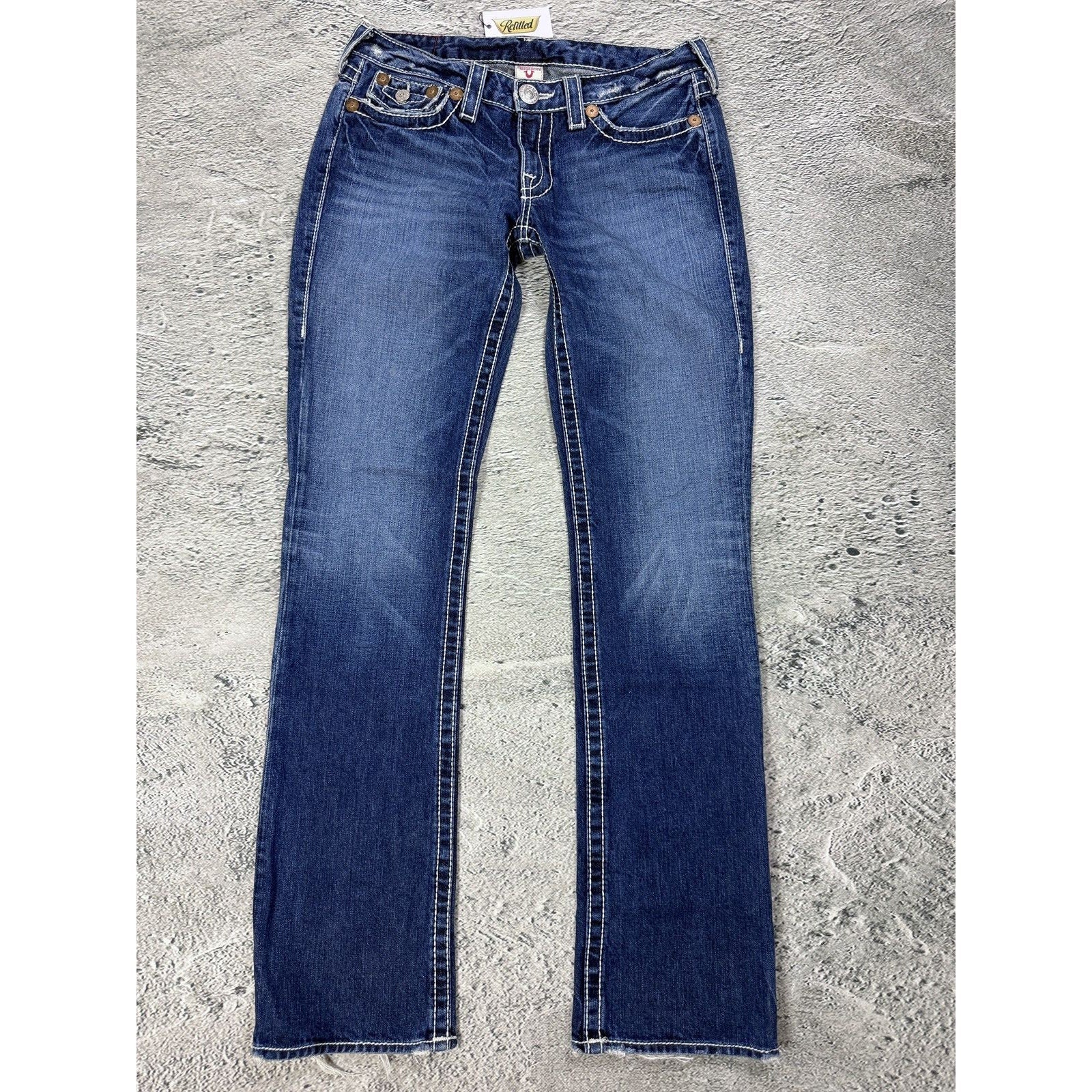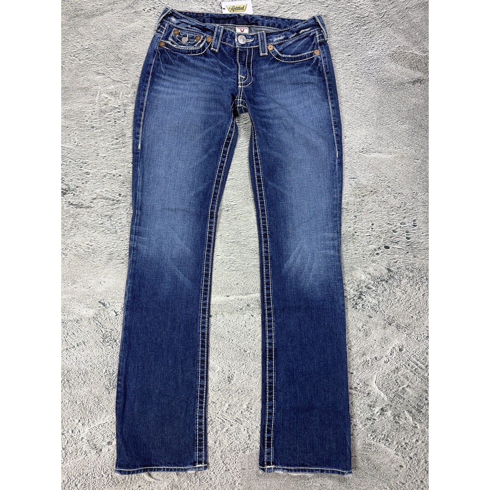 True Religion blue jeans white thick stitching Billy