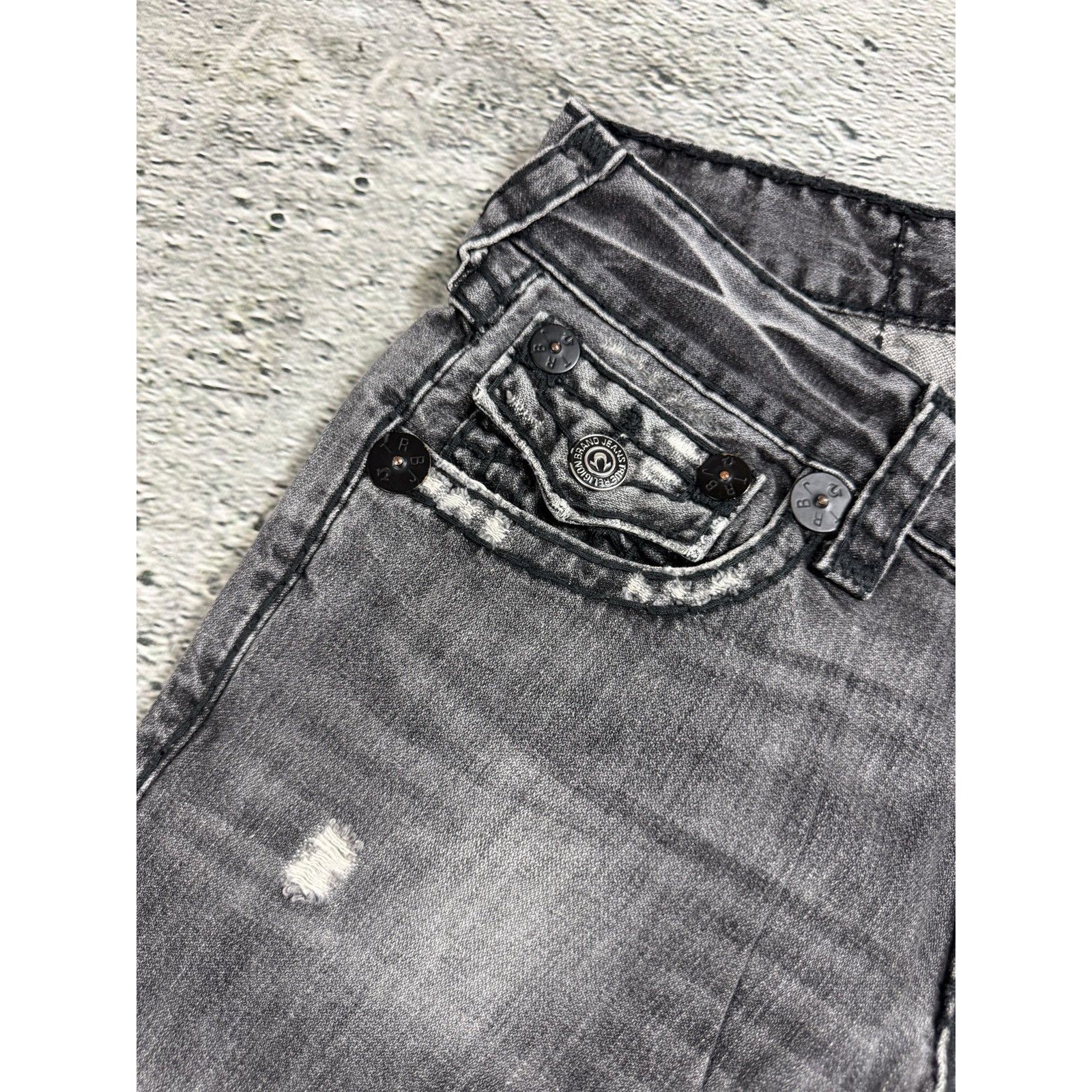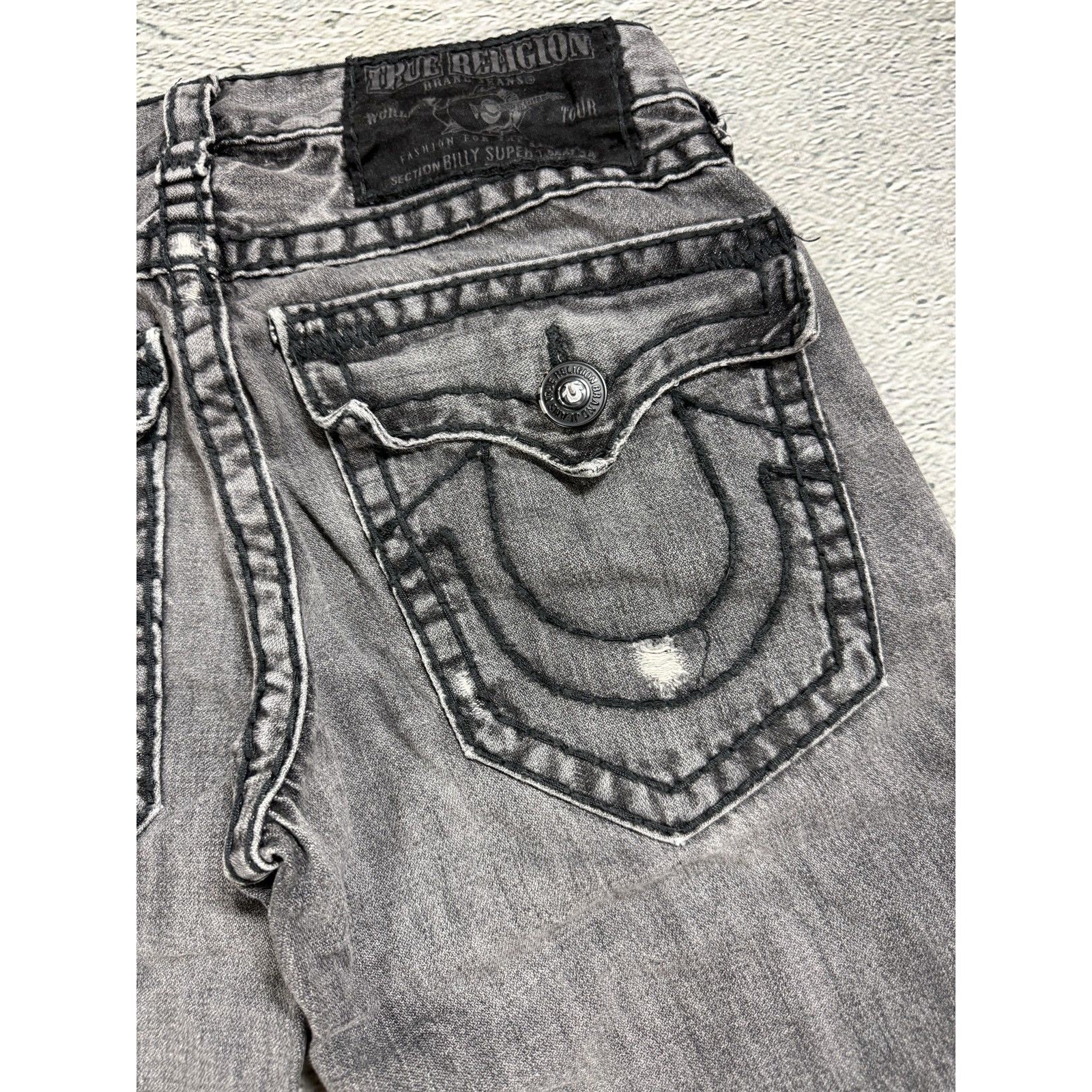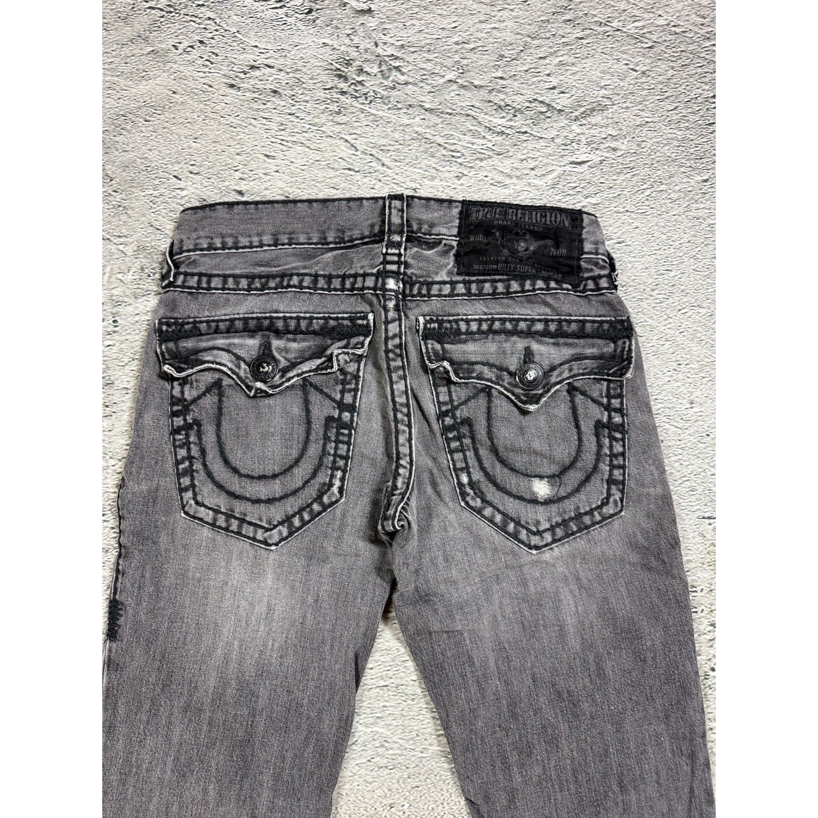 True Religion jeans grey black thick stitching Billy bootcut