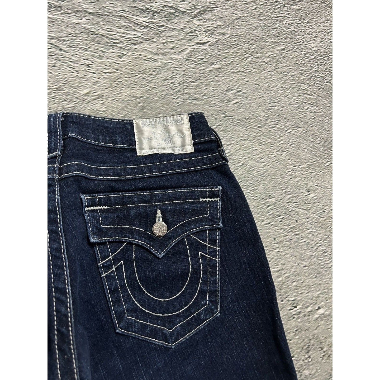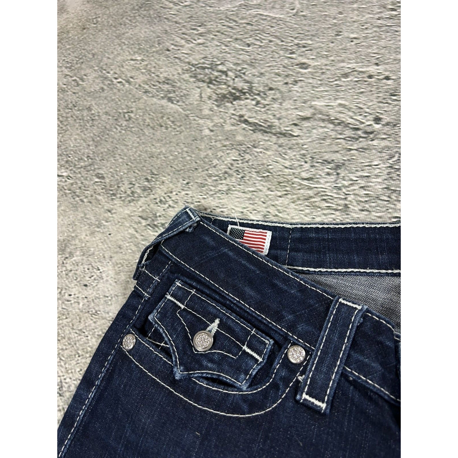 True Religion jeans slim white rhinestones vintage blue