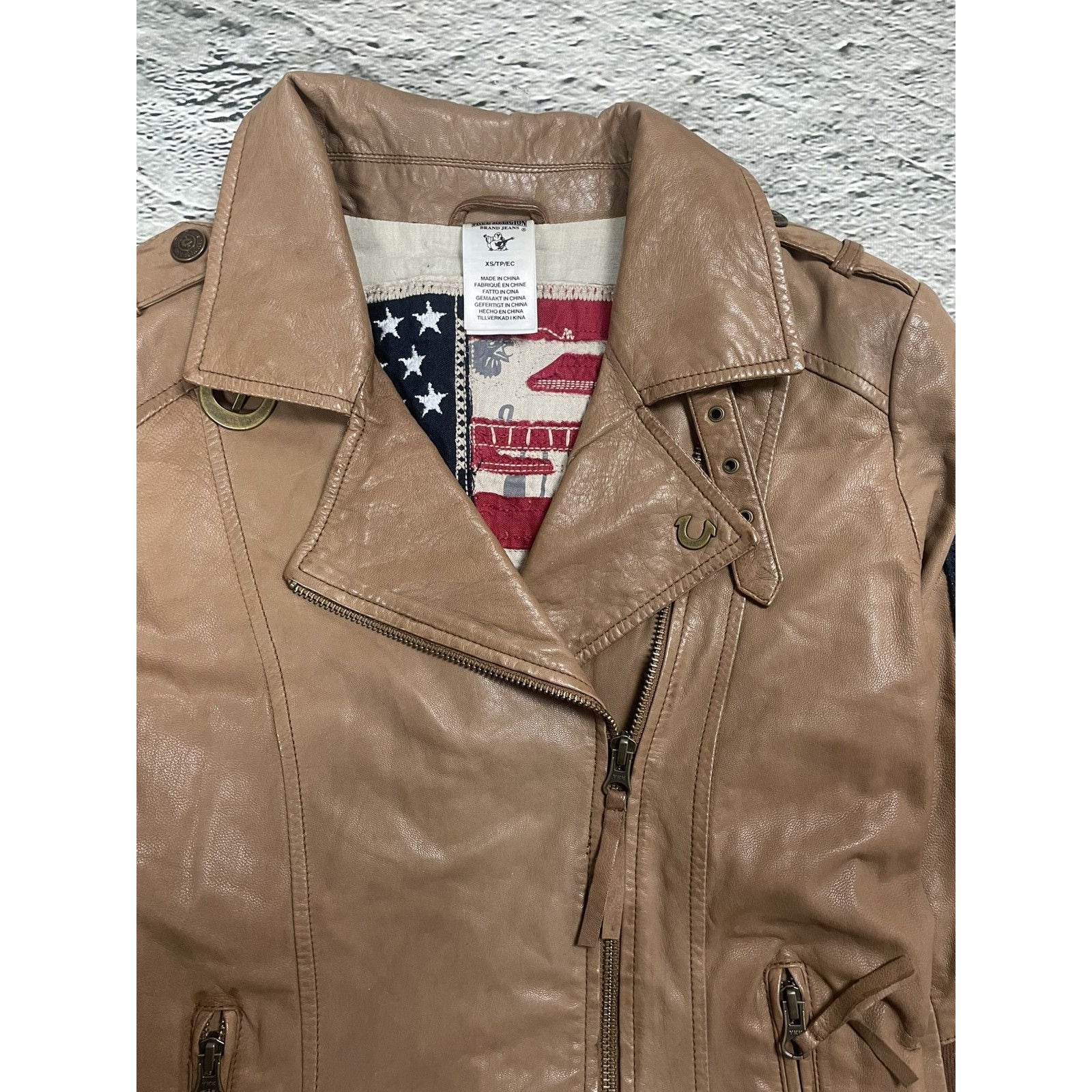 True Religion leather jacket brown Y2K Avant Garde kill bill